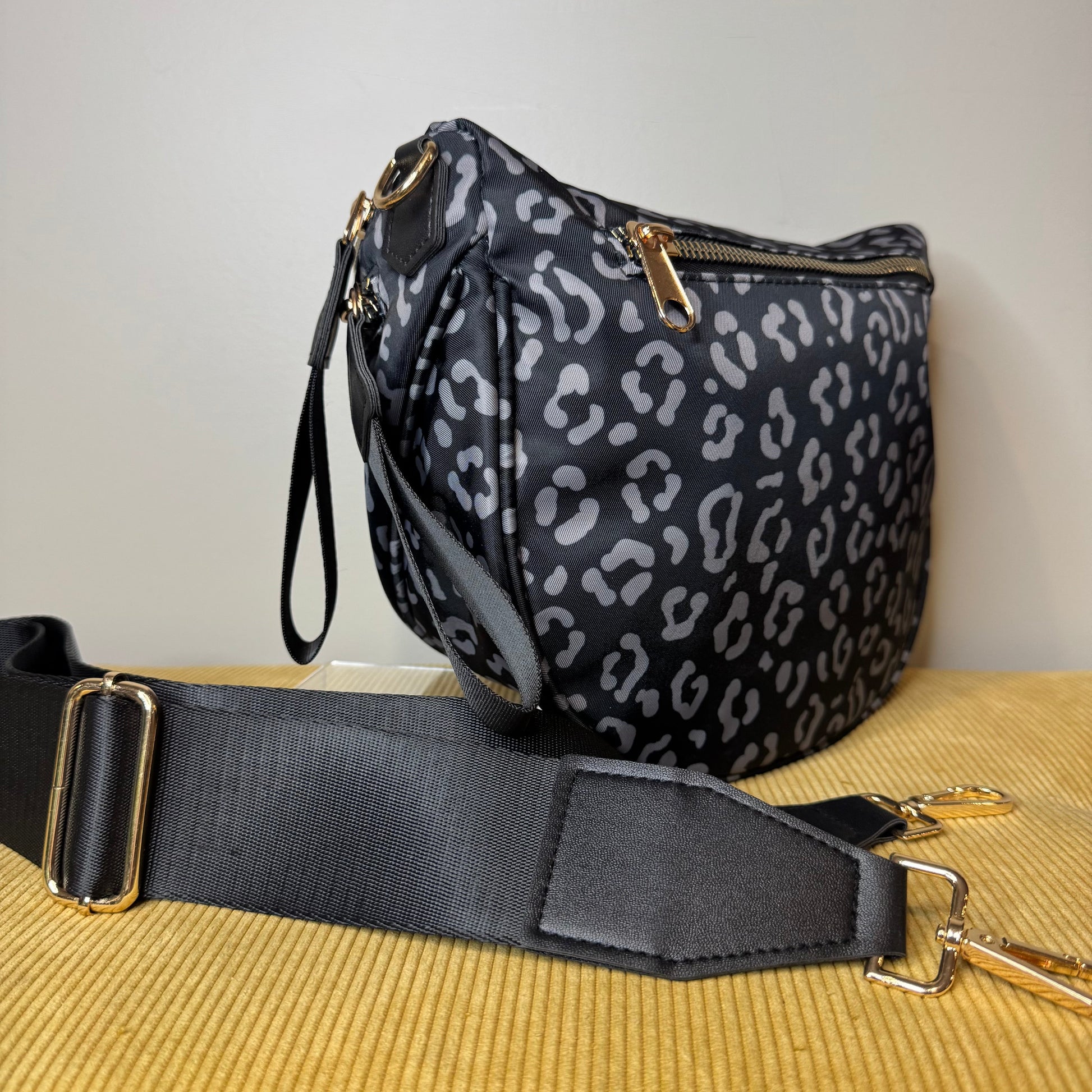 The Roni Nylon Crossbody - Black & Grey Animal