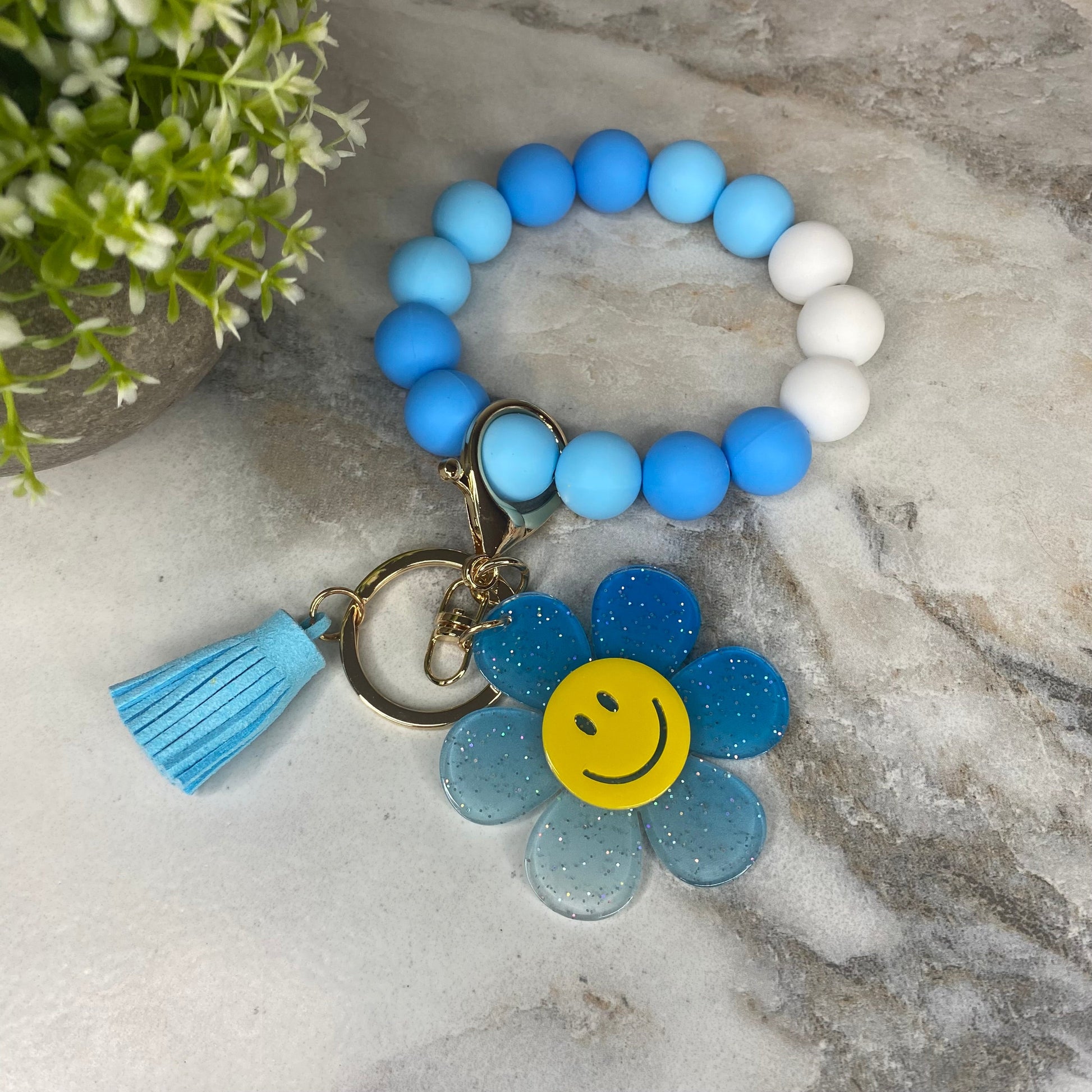 Silicone & Acrylic Bracelet Keychain - Daisy - Blue