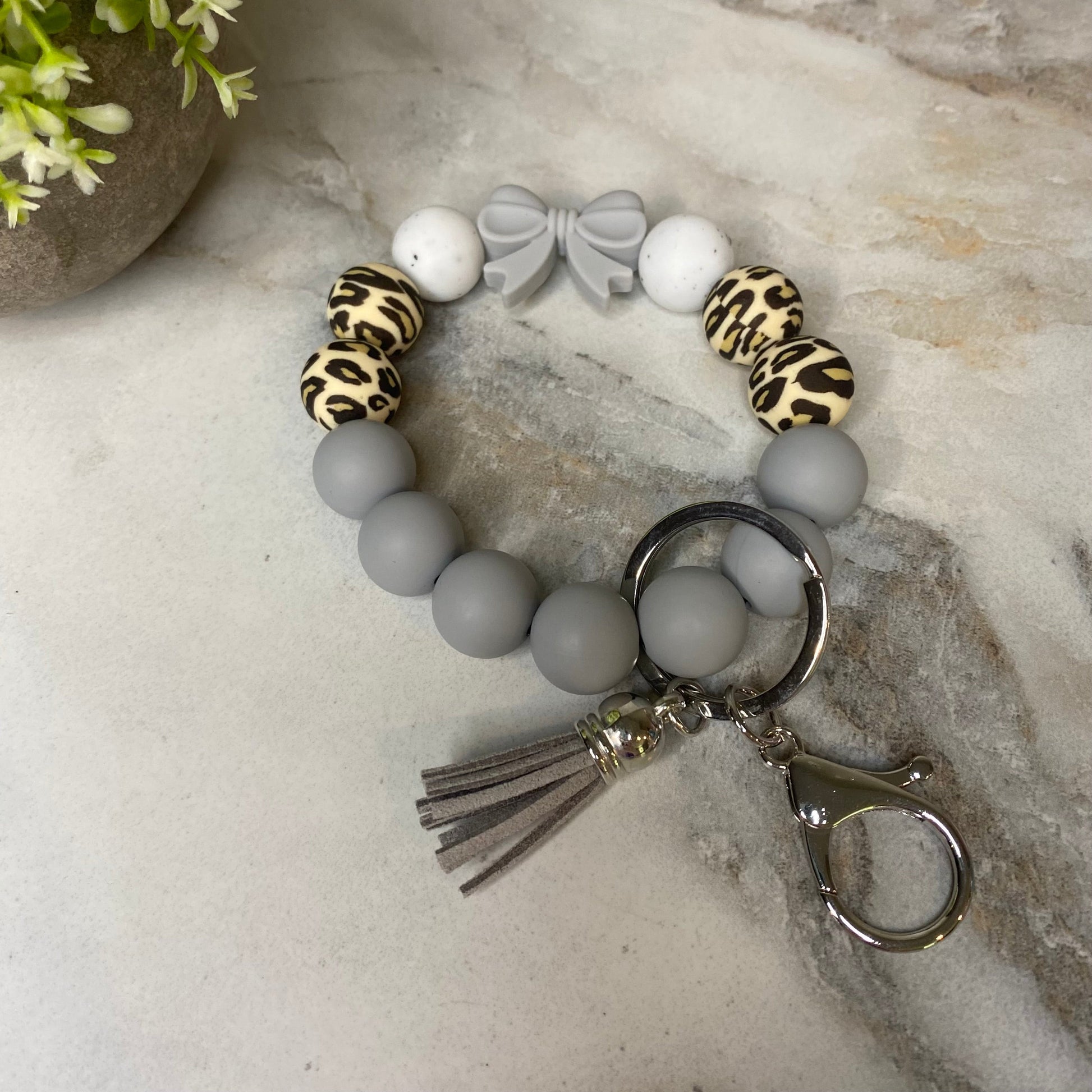Silicone Bracelet Keychain - Grey Bow