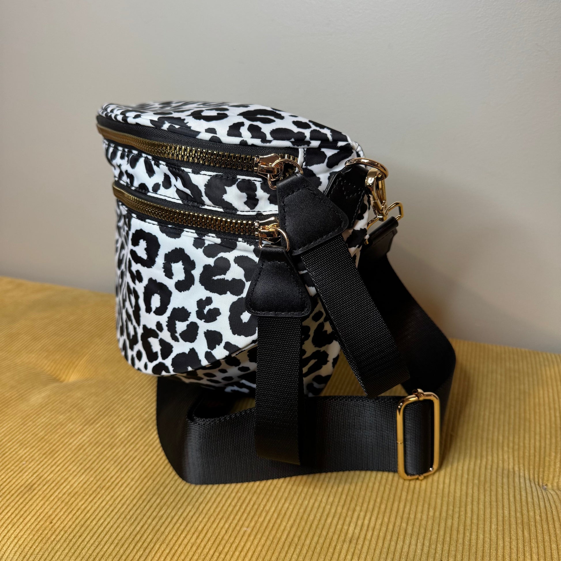 The Roni Nylon Crossbody - Animal Print White with Black