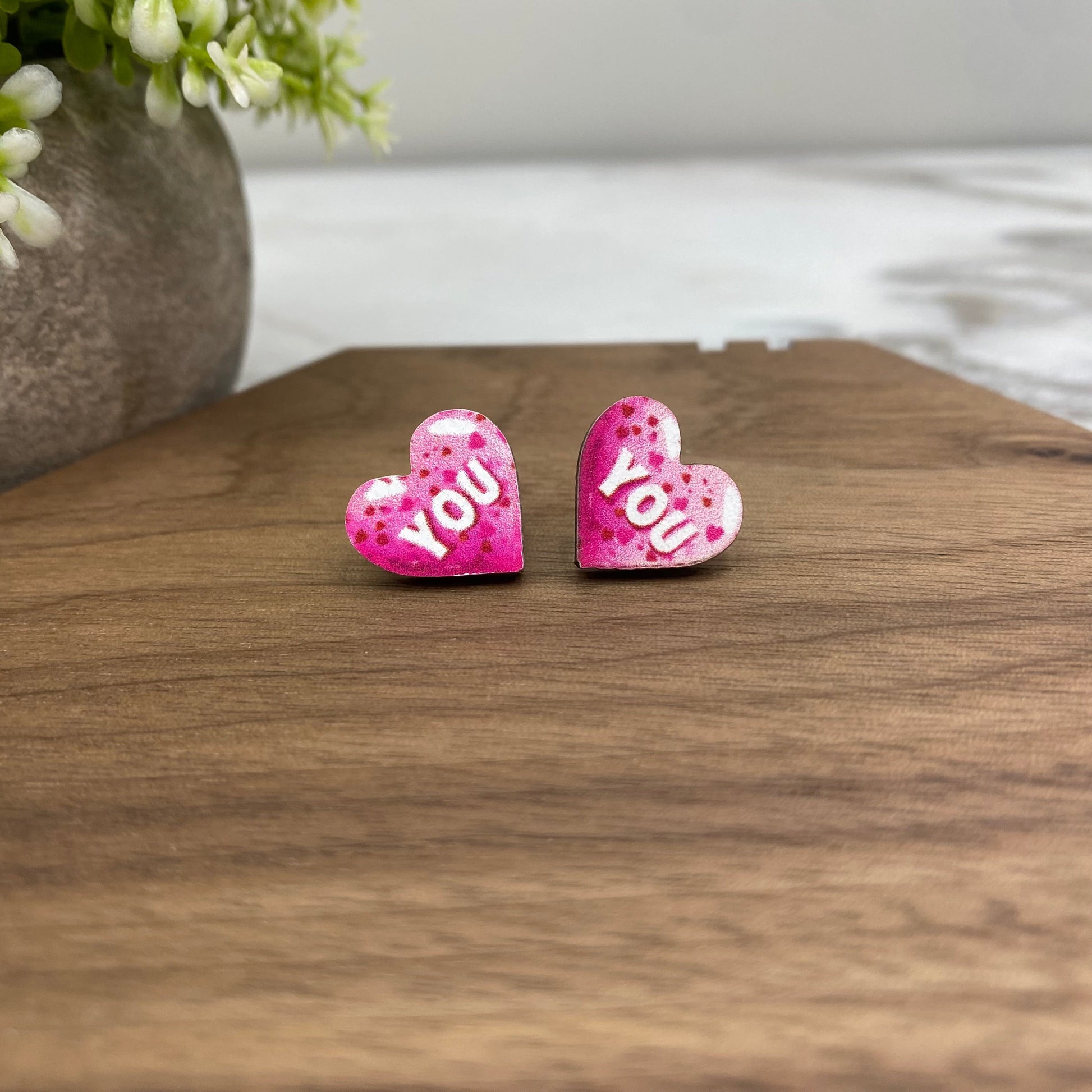 Wooden Stud Earrings - Valentine’s Day - #5